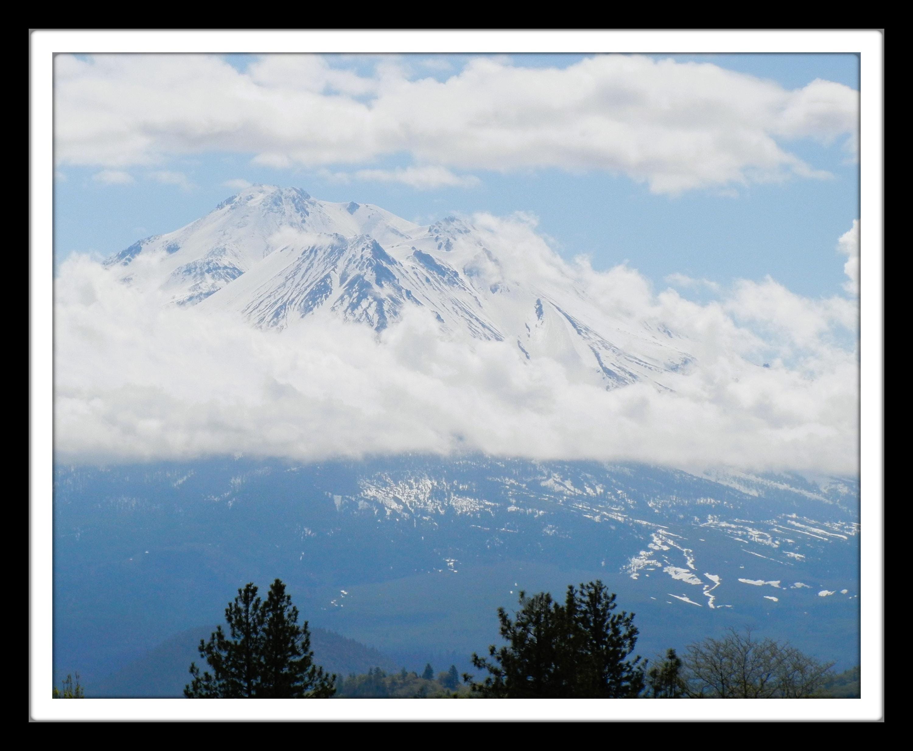 Mt. Shasta is a majestic and awe-inspiring sight. Its snow-capped peak rises into the sky, dominating the landscape with its sheer size and grandeur.